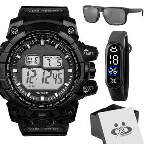 Relogio Masculino Prova Dagua Digital + Oculos Proteção Uv Chegou o novo Kit Orizom Spaceman X: Relógios e Óculos Masculinos! - Relógio Digital Masculino Orizom Spaceman X: Robusto, grande e ultra premium. Resistente à água, ideal para todas as ocasiões. Pulseira de silicone ajustável e resistente para garantir conforto e durabilidade. Com alarme, cronômetro, luz de LED e exibição de data.