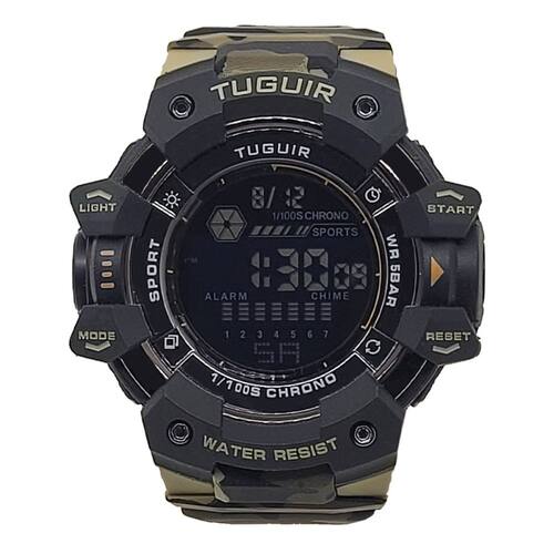 Marca: Tuguir Categoria: Digital Analógico: Não Digital: Sim (1 Horário) Calendário: Não Despertador: Sim Mostra o Dia da Semana: Sim Mostra o Dia do Mês: Sim Cronômetro: Sim Luz: Sim Cor da Iluminação: Azul Resistente à Água: 5 ATM - Respingos: Sim - Chuva: Sim - Lavar Carro: Sim - Lavar Louça: Sim - Natação: Sim - Mergulho: Não Característica do Vidro: Acrílico Tipo de Fecho: Fivela Cor da Caixa: Preto Material da Caixa: Plástico Formato da Caixa: Redondo Diâmetro da Caixa: 54,00 (mm) Espessura da Caixa: 18,00 (mm) Cor da Pulseira: Marrom Camuflado Material da Pulseira: Borracha Largura da Pulseira: 21,00 (mm) Comprimento Máximo da Pulseira: 250,00 (mm) Alimentação: Bateria Interna Peso Líquido: 0,070 Kg Modelo: TG30404 Cor Predominante: Marrom Camuflado Cor Diferencial: Preto Garantia: 12 Meses
