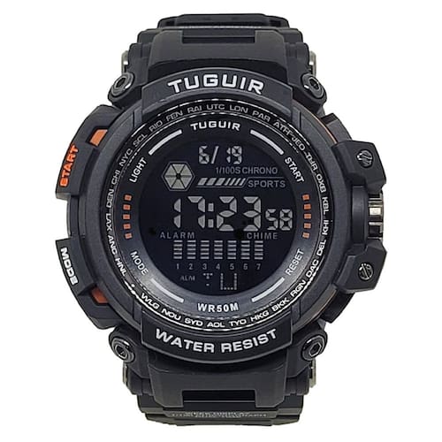 Marca: Tuguir Categoria: Digital Analógico: Não Digital: Sim (1 Horário) Despertador: Sim Mostra o Dia da Semana: Sim Mostra o Dia do Mês: Sim Cronômetro: Sim Luz: Sim Cor da Iluminação: Azul Resistente à Água: 5 ATM - Respingos: Sim - Chuva: Sim - Lavar Carro: Sim - Lavar Louça: Sim - Natação: Sim - Mergulho: Não Característica do Vidro: Acrílico Tipo de Fecho: Fivela Cor da Caixa: Preto Material da Caixa: Plástico Formato da Caixa: Redondo Diâmetro da Caixa: 50,00 (mm) Espessura da Caixa: 18,00 (mm) Cor da Pulseira: Preto Material da Pulseira: Plástico Largura da Pulseira: 22,00 (mm) Comprimento Máximo da Pulseira: 245,00 (mm) Alimentação: Bateria Interna Peso Líquido: 0,070 Kg Modelo: TG30408 Cor Predominante: Preto Cor Diferencial: Laranja Garantia: 12 Meses