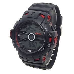 Marca: Tuguir Categoria: Digital Analógico: Não Digital: Sim (1 Horário) Despertador: Sim Mostra o Dia da Semana: Sim Mostra o Dia do Mês: Sim Luz: Sim Cor da Iluminação: Verde Resistente à Água: 5 ATM - Respingos: Sim - Chuva: Sim - Lavar Carro: Sim - Lavar Louça: Sim - Natação: Sim - Mergulho: Não Característica do Vidro: Acrílico Tipo de Fecho: Fivela Cor da Caixa: Preto e Vermelho Material da Caixa: Plástico Formato da Caixa: Redondo Diâmetro da Caixa: 47,00 (mm) Espessura da Caixa: 17,00 (mm) Cor da Pulseira: Preto Material da Pulseira: Borracha Largura da Pulseira: 21,00 (mm) Comprimento Máximo da Pulseira: 240,00 (mm) Alimentação: Bateria Interna Peso Líquido: 0,054 Kg Modelo: TG30411 Cor Predominante: Preto Cor Diferencial: Vermelho Garantia: 12 Meses