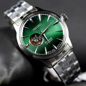 A Seiko do Japão é uma das marcas de relógios mais inovadoras do mundo, talvez a maior. Sempre a frente do mercado, a Seiko criou e ainda cria modelos sofisticados e com alta tecnologia. Alguns modelos são tão futuristas que é possível encontrar somente nos relógios Seiko, fazendo da marca uma empresa pioneira e formadora de opinião de seu segmento. Empresa focada na preservação do meio ambiente, busca sempre minimizar o impacto do produto de seus relógios na natureza, tanto é que essa característica já lhe assegurou um certificado ISO 14001. Atualmente a Seiko remete uma elegância impar em seus produtos, uma marca de relógios luxuosos e tecnológicos. Desde o primeiro modelo em 1881 até hoje a Seiko cresce vertiginosa e exponencialmente. Se você pensa em adquirir um relógio para a vida toda, a Seiko é uma excelente opção. Relógio Masculino SEIKO Presage Automático SSA441J1 relógio Automático Mecânico 23 jewels calibre 4R38 mecanismo Automático com 3 ponteiros caixa do relógio em aço inoxidável prateado pulseira de aço inoxidável prateado fecho com botões laterais para abertura fecho deployant mostrador verde com mecanismo aparente vidro de Cristal Mineral coroa simples padrão sem rosca tampa posterior rosqueada com vidro de cristal e mecanismo aparente resistência à água 5ATM 50M