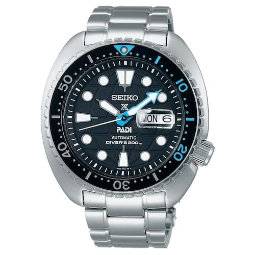 A Seiko do Japão é uma das marcas de relógios mais inovadoras do mundo, talvez a maior. Sempre a frente do mercado, a Seiko criou e ainda cria modelos sofisticados e com alta tecnologia. Alguns modelos são tão futuristas que é possível encontrar somente nos relógios Seiko, fazendo da marca uma empresa pioneira e formadora de opinião de seu segmento. Empresa focada na preservação do meio ambiente, busca sempre minimizar o impacto do produto de seus relógios na natureza, tanto é que essa característica já lhe assegurou um certificado ISO 14001. Atualmente a Seiko remete uma elegância impar em seus produtos, uma marca de relógios luxuosos e tecnológicos. Desde o primeiro modelo em 1881 até hoje a Seiko cresce vertiginosa e exponencialmente. Se você pensa em adquirir um relógio para a vida toda, a Seiko é uma excelente opção. Descrição: Relógio Masculino SEIKO Prospex Automático - SRPG19K1 P1SX máquina com movimento automático mecânico , Clibre 4R36 mecanismo Automático com 3 ponteiros caixa do relógio em aço inoxidável prateado com catraca unidirecional pulseira de aço inoxidável prateado fecho com trava de segurança e botões laterais para abertura mostrador preto com textura que lembra uma casca de tartaruga vidro de Safira com lente de aumento relógio com calendário dia do mês e dia da semana calendário duplo coroa rosqueada tampa posterior rosqueada resistência à água 20ATM 200M Marca: Não Informado
