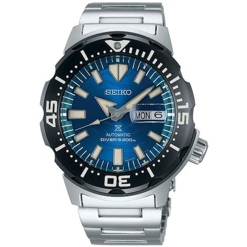 A Seiko do Japão é uma das marcas de relógios mais inovadoras do mundo, talvez a maior. Sempre a frente do mercado, a Seiko criou e ainda cria modelos sofisticados e com alta tecnologia. Alguns modelos são tão futuristas que é possível encontrar somente nos relógios Seiko, fazendo da marca uma empresa pioneira e formadora de opinião de seu segmento. Empresa focada na preservação do meio ambiente, busca sempre minimizar o impacto do produto de seus relógios na natureza, tanto é que essa característica já lhe assegurou um certificado ISO 14001. Atualmente a Seiko remete uma elegância impar em seus produtos, uma marca de relógios luxuosos e tecnológicos. Desde o primeiro modelo em 1881 até hoje a Seiko cresce vertiginosa e exponencialmente. Se você pensa em adquirir um relógio para a vida toda, a Seiko é uma excelente opção. Relógio Masculino SEIKO Prospex - SRPE09K1 D1SX máquina com movimento automático mecânico calibre 4R36 mecanismo Automático com 3 ponteiros caixa do relógio em aço inoxidável prateado pulseira de aço inoxidável prateado fecho com trava de segurança e botões laterais para abertura mostrador azul com textura de ondas vidro de Safira com lente de aumento no calendário relógio com calendário dia do mês e dia da semana calendário duplo coroa rosqueada tampa posterior rosqueada resistência à água 20ATM 200M