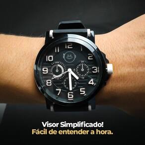 Pulseira de borracha ajustável oferece conforto durante o uso e adiciona um toque moderno e esportivo ao relógio.
