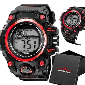 O relógio digital masculino Orizom Spaceman é o acessório perfeito para homens que buscam aventura, estilo e funcionalidade em um único item. Com seu design robusto, formato redondo de grande porte e cor todo preto com detalhes em vermelho, ele proporciona um visual esportivo e marcante que irá complementar o seu look.