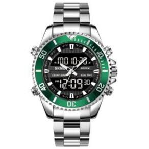 Característica: cronômetro, luz de fundo, resistente a choques, display LED, luminoso, data automática, cronógrafo, calendário completo, vários fusos horários, alarme, display semanal