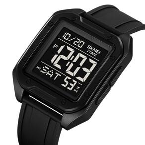 Relógio Masculino Skmei 2128 Preto Relógio Masculino Skmei 2128 Preto Marca: Skmei Categoria: Calendário: Sim Despertador: Sim Mostra o Dia da Semana: Sim Mostra o Dia do Mês: Sim Cronômetro: Sim Contador Regressivo: Sim Luz: Sim Cor da Iluminação: Verde Característica do Vidro: Acrílico Tipo de Fecho: Fivela Cor da Caixa: Preto Material da Caixa: Plástico Formato da Caixa: Quadrado Comprimento da Caixa: 41,00 mm Largura da Caixa: 41,00 mm Espessura da Caixa: 14,00 mm Cor da Pulseira: Preto Material da Pulseira: Silicone Largura da Pulseira: 22,00 mm Comprimento Máximo da Pulseira: 245,00 mm Alimentação: Bateria Interna Peso Líquido: 0,045 Kg Modelo: 2128 Cor Predominante: Preto : 12 Meses Conteúdo da Embalagem: 01 Relógio 01 Embalagem 01 Termo de