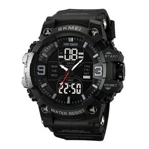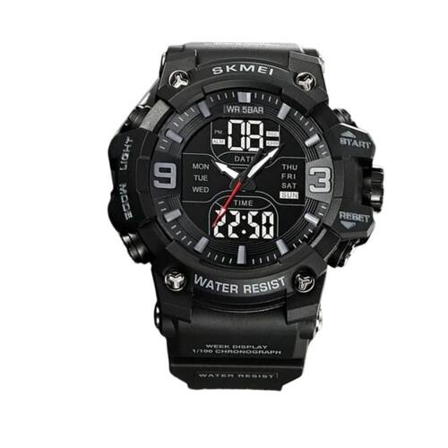 Marca: Skmei Categoria: AnaDigi Analógico: Sim (1 Horário) Ponteiros Fluorescentes: Selecione Digital: Sim (1 Horário) Calendário: Sim Despertador: Sim Mostra o Dia da Semana: Sim Mostra o Dia do Mês: Sim Cronômetro: Sim Luz: Sim Cor da Iluminação: Verde Resistente à Água: 5 ATM - Respingos: Sim - Chuva: Sim - Lavar Carro: Sim - Lavar Louça: Sim - Natação: Sim - Mergulho: Não Característica do Vidro: Selecione Tipo de Fecho: Fivela Cor da Caixa: Preto Material da Caixa: Plástico Formato da Caixa: Redondo Diâmetro da Caixa: 52,50 (mm) Espessura da Caixa: 17,50 (mm) Cor da Pulseira: Preto Material da Pulseira: Plástico Largura da Pulseira: 21,50 (mm) Comprimento Máximo da Pulseira: 260,00 (mm) Alimentação: Bateria Interna Peso Líquido: 0,075 Kg Modelo: 2222 Cor Predominante: Preto Garantia: 12 Meses