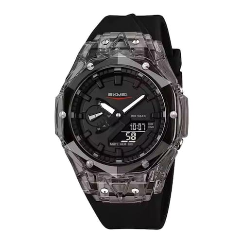 Relógio Masculino Skmei AnaDigi 2411 Preto Relógio Masculino Skmei AnaDigi 2411 Preto Marca: Skmei Categoria: AnaDigi Analógico: Sim 1 Horário Ponteiros Fluorescentes: Selecione Digital: Sim 1 Horário Calendário: Sim Mostra o Dia da Semana: Sim Mostra o Dia do Mês: Sim Cronômetro: Sim Contador Regressivo: Sim Luz: Sim Cor da Iluminação: Branco Resistente à Água: 5 ATM Pode ser Utilizado para nadar no raso, por pouco tempo submerso - Respingos: Sim - Chuva: Sim - Lavar Carro: Sim - Lavar Louça: Sim - Natação: Sim - Mergulho: Não Característica do Vidro: Acrílico Tipo de Fecho: Fivela Cor da Caixa: Preto Material da Caixa: Plástico Formato da Caixa: Redondo Diâmetro da Caixa: 43,00 mm Espessura da Caixa: 14,00 mm Cor da Pulseira: Preto Material da Pulseira: Borracha Largura da Pulseira: 20,00 mm Comprimento Máximo da Pulseira: 250,00 mm Alimentação: Bateria Interna Peso Líquido: 0,055 Kg Modelo: 2411 Cor Predominante: Preto : 12 Meses Conteúdo da Embalagem: 01 Relógio 01 Embalagem 01 Termo de