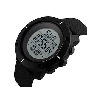 Relógio Masculino Skmei Digital 1213 Preto Relógio Masculino Skmei Digital 1213 Preto Marca: Skmei Categoria: Digital ógico: Não Digital: Sim 1 Horário Calendário: Sim Despertador: Sim Mostra o Dia da Semana: Sim Mostra o Dia do Mês: Sim Cronômetro: Sim Contador Regressivo: Não Luz: Sim Cor da Iluminação: Verde Resistente à Água: 5 ATM Pode ser para nadar no raso, por pouco tempo submerso - Respingos: Sim - Chuva: Sim - Lavar Carro: Sim - Lavar Louça: Sim - Natação: Sim - Mergulho: Não Característica do Vidro: Acrílico Tipo de Fecho: Fivela Cor da Caixa: Preto Material da Caixa: Plástico Formato da Caixa: Redondo Diâmetro da Caixa: 49,50 mm Espessura da Caixa: 14,00 mm Cor da Pulseira: Preto Material da Pulseira: Borracha Largura da Pulseira: 20,00 mm Comprimento Máximo da Pulseira: 240,00 mm Alimentação: Bateria Interna Peso Líquido: 0,060 Kg Modelo: 1213 Cor Predominante: Preto : 12 Meses Conteúdo da Embalagem: 01 Relógio 01 Embalagem 01 Termo de Marca: Não Informado