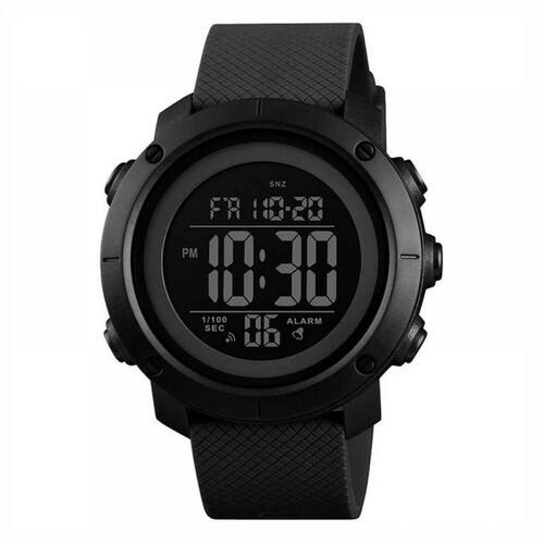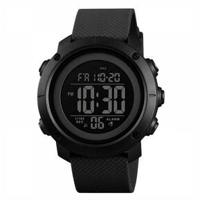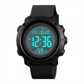 Marca: Skmei Categoria: Digital Analógico: Não Digital: Sim (1 Horário) Calendário: Sim Despertador: Sim Mostra o Dia da Semana: Sim Mostra o Dia do Mês: Sim Cronômetro: Sim Contador Regressivo: Sim Luz: Sim Cor da Iluminação: Verde Resistente à Água: 5 ATM - Respingos: Sim - Chuva: Sim - Lavar Carro: Sim - Lavar Louça: Sim - Natação: Sim - Mergulho: Não Característica do Vidro: Acrílico Tipo de Fecho: Fivela Cor da Caixa: Preto Material da Caixa: Plástico Formato da Caixa: Redondo Diâmetro da Caixa: 45,00 (mm) Espessura da Caixa: 14,70 (mm) Cor da Pulseira: Preto Material da Pulseira: Borracha Largura da Pulseira: 21,80 (mm) Comprimento Máximo da Pulseira: 230,00 (mm) Alimentação: Bateria Interna Peso Líquido: 0,045 Kg Modelo: 1426 Cor Predominante: Preto Garantia: 12 Meses