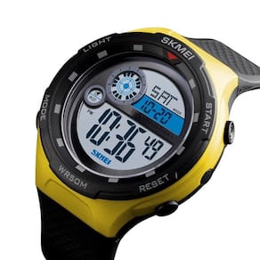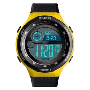 Marca: Skmei Categoria: Digital Analógico: Não Digital: Sim (1 Horário) Calendário: Sim Despertador: Sim Mostra o Dia da Semana: Sim Mostra o Dia do Mês: Sim Cronômetro: Sim Contador Regressivo: Sim Luz: Sim Cor da Iluminação: Verde Resistente à Água: 5 ATM - Respingos: Sim - Chuva: Sim - Lavar Carro: Sim - Lavar Louça: Sim - Natação: Sim - Mergulho: Não Característica do Vidro: Acrílico Tipo de Fecho: Fivela Cor da Caixa: Amarelo Material da Caixa: Plástico Formato da Caixa: Redondo Diâmetro da Caixa: 47,90 (mm) Espessura da Caixa: 15,30 (mm) Cor da Pulseira: Preto Material da Pulseira: Plástico Largura da Pulseira: 21,80 (mm) Comprimento Máximo da Pulseira: 250,00 (mm) Alimentação: Bateria Interna Peso Líquido: 0,050 Kg Modelo: 1465 Cor Predominante: Preto Cor Diferencial: Amarelo Garantia: 12 Meses