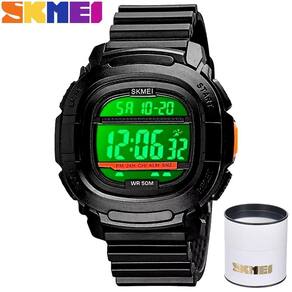 Relógio Masculino Skmei Digital 1657 Preto e Laranja Relógio Masculino Skmei Digital 1657 Preto e Laranja Marca: Skmei Categoria: Digital ógico: Não Digital: Sim 1 Horário Calendário: Sim Despertador: Sim Mostra o Dia da Semana: Sim Mostra o Dia do Mês: Sim Cronômetro: Sim Contador Regressivo: Sim Luz: Sim Cor da Iluminação: Verde Resistente à Água: 5 ATM Pode ser para nadar no raso, por pouco tempo submerso - Respingos: Sim - Chuva: Sim - Lavar Carro: Sim - Lavar Louça: Sim - Natação: Sim - Mergulho: Não Característica do Vidro: Acrílico Tipo de Fecho: Fivela Cor da Caixa: Preto Material da Caixa: Plástico Formato da Caixa: Quadrado Comprimento da Caixa: 48,00 mm Largura da Caixa: 48,00 mm Espessura da Caixa: 17,10 mm Cor da Pulseira: Preto Material da Pulseira: Plástico Largura da Pulseira: 21,80 mm Comprimento Máximo da Pulseira: 230,00 mm Alimentação: Bateria Interna Peso Líquido: 0,055 Kg Modelo: 1657 Cor Predominante: Preto Cor Diferencial: Laranja : 12 Meses Conteúdo da Embalagem: 01 Relógio 01 Embalagem 01 Termo de Marca: Não Informado