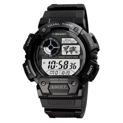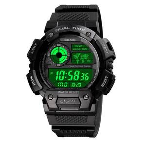 Relógio Masculino Skmei Digital 1723 Preto Relógio Masculino Skmei Digital 1723 Preto Marca: Skmei Categoria: Digital Analógico: Não Digital: Sim 1 Horário Calendário: Sim Despertador: Sim Mostra o Dia da Semana: Sim Mostra o Dia do Mês: Sim Cronômetro: Sim Contador Regressivo: Sim Luz: Sim Cor da Iluminação: Verde Resistente à Água: 5 ATM Pode ser Utilizado para nadar no raso, por pouco tempo submerso - Respingos: Sim - Chuva: Sim - Lavar Carro: Sim - Lavar Louça: Sim - Natação: Sim - Mergulho: Não Característica do Vidro: Acrílico Tipo de Fecho: Fivela Cor da Caixa: Preto Material da Caixa: Plástico Formato da Caixa: Redondo Diâmetro da Caixa: 48,00 mm Espessura da Caixa: 15,00 mm Cor da Pulseira: Preto Material da Pulseira: Plástico Largura da Pulseira: 21,00 mm Comprimento Máximo da Pulseira: 235,00 mm Alimentação: Bateria Interna Peso Líquido: 0,049 Kg Modelo: 1723 Cor Predominante: Preto : 12 Meses Conteúdo da Embalagem: 01 Relógio 01 Embalagem 01 Termo de