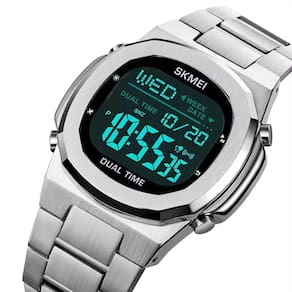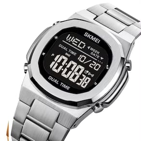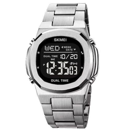 Relógio Masculino Skmei Digital 2004 PrataMarca: Skmei Categoria: Digital Analógico: Não Digital: Sim (1 Horário) Calendário: Sim Despertador: Sim Mostra o Dia da Semana: Sim Mostra o Dia do Mês: Sim Cronômetro: Sim Contador Regressivo: Sim Luz: Sim Cor da Iluminação: VerdeResistente à Água: 3 ATM (Resiste a imersões breves) - Respingos: Sim - Chuva: Sim - Lavar Carro: Sim - Lavar Louça: Sim - Natação: Não - Mergulho: Não Característica do Vidro: Cristal Mineral Tipo de Fecho: Dobrável com Botão Cor da Caixa: Prata Material da Caixa: Metal Banho IP Formato da Caixa: Redondo Diâmetro da Caixa: 38,00 (mm) Espessura da Caixa: 11,00 (mm) Cor da Pulseira: Prata Material da Pulseira: Metal Largura da Pulseira: 20,00 (mm) Comprimento Máximo da Pulseira: 220,00 (mm) Alimentação: Bateria Interna Peso Líquido: 0,105 Kg Modelo: 2004 Cor Predominante: Prata Garantia: 12 MesesConteúdo da Embalagem: 01 Relógio 01 Embalagem 01 Termo de Garantia