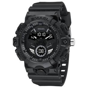 Relógio Masculino Smael AnaDigi 8085 Preto Marca: Smael Categoria: AnaDigi ógico: Sim 1 Horário Ponteiros Fluorescentes: Sim Digital: Sim 1 Horário Calendário: Sim Despertador: Sim Mostra o Dia da Semana: Sim Mostra o Dia do Mês: Sim Cronômetro: Sim Contador Regressivo: Não Luz: Sim Cor da Iluminação: Verde Resistente à Água: 5 ATM Pode ser para nadar no raso, por pouco tempo submerso - Respingos: Sim - Chuva: Sim - Lavar Carro: Sim - Lavar Louça: Sim - Natação: Sim - Mergulho: Não Característica do Vidro: Acrílico Tipo de Fecho: Fivela Cor da Caixa: Preto Material da Caixa: Plástico Formato da Caixa: Redondo Diâmetro da Caixa: 5218,00 mm Espessura da Caixa: 0,00 mm Cor da Pulseira: Preto Material da Pulseira: Borracha Largura da Pulseira: 22,00 mm Comprimento Máximo da Pulseira: 250,00 mm Alimentação: Bateria Interna Peso Líquido: 0,062 Kg Modelo: 8085 Cor Predominante: Preto : 12 Meses Conteúdo da Embalagem: 01 Relógio 01 Embalagem 01 Termo de Marca: Não Informado