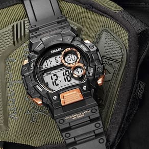 Relógio Masculino Smael Digital 1443 Preto Relógio Masculino Smael Digital 1443 Preto Marca: Smael Categoria: Digital ógico: Não Digital: Sim 1 Horário Calendário: Sim Despertador: Sim Mostra o Dia da Semana: Sim Mostra o Dia do Mês: Sim Cronômetro: Sim Contador Regressivo: Não Luz: Sim Cor da Iluminação: Verde Resistente à Água: 5 ATM Pode ser para nadar no raso, por pouco tempo submerso - Respingos: Sim - Chuva: Sim - Lavar Carro: Sim - Lavar Louça: Sim - Natação: Sim - Mergulho: Não Característica do Vidro: Acrílico Tipo de Fecho: Fivela Cor da Caixa: Preto Material da Caixa: Plástico Formato da Caixa: Redondo Diâmetro da Caixa: 51,00 mm Espessura da Caixa: 18,00 mm Cor da Pulseira: Preto Material da Pulseira: Borracha Largura da Pulseira: 22,00 mm Comprimento Máximo da Pulseira: 250,00 mm Alimentação: Bateria Interna Peso Líquido: 0,060 Kg Modelo: 1443 Cor Predominante: Preto : 12 Meses Conteúdo da Embalagem: 01 Relógio 01 Embalagem 01 Termo de Marca: Não Informado
