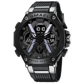 Relógio Masculino Smael Digital 8087 Preto Relógio Masculino Smael Digital 8087 Preto Marca: Smael Categoria: Digital ógico: Não Digital: Sim 1 Horário Calendário: Sim Despertador: Sim Mostra o Dia da Semana: Sim Mostra o Dia do Mês: Sim Cronômetro: Sim Contador Regressivo: Não Luz: Sim Cor da Iluminação: Azul Resistente à Água: 5 ATM Pode ser para nadar no raso, por pouco tempo submerso - Respingos: Sim - Chuva: Sim - Lavar Carro: Sim - Lavar Louça: Sim - Natação: Sim - Mergulho: Não Característica do Vidro: Acrílico Tipo de Fecho: Fivela Cor da Caixa: Preto Material da Caixa: Plástico Formato da Caixa: Redondo Diâmetro da Caixa: 45,00 mm Espessura da Caixa: 18,00 mm Cor da Pulseira: Preto Material da Pulseira: Silicone Largura da Pulseira: 21,00 mm Comprimento Máximo da Pulseira: 240,00 mm Alimentação: Bateria Interna Peso Líquido: 0,067 Kg Modelo: 8087 Cor Predominante: Preto : 12 Meses Conteúdo da Embalagem: 01 Relógio 01 Embalagem 01 Termo de Marca: Não Informado