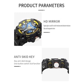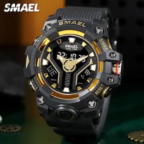 • Exibição de tempo duplo :O relógio exibe a hora local e a hora em um segundo fuso horário, tornando-o perfeito para viagens ou dupla cidadania. • Resistente ao choque :O relógio é projetado para suportar choques e impactos, tornando-o ideal para esportes e atividades ao ar livre. • Luz LED :O relógio possui uma luz LED que ilumina a tela em condições de pouca luz, garantindo fácil legibilidade. • Qualidade militar 8075 :O relógio é feito com materiais de alta qualidade e atende aos padrões militares, garantindo durabilidade e longevidade.