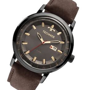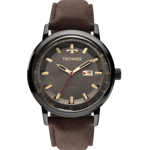 Relógio Technos Golf com design versátil, assinatura de linha diferenciada no mostrador de cor preta, abertura de calendário na posição de 3h e marcações no aro interno. Produto 100% em aço inoxidável, com banho dourado, máquina quartz japonesa Miyota, calendário e resistência à água de 50m. Tamanho de caixa 46mm