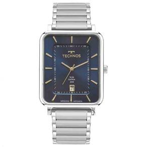 Relógio Technos Slim masculino com caixa e pulseira de aço. Adepta ao design minimalista, a linha Slim reinventa o conceito clássico da simplicidade para apresentar relógios modernos, com acabamentos sofisticados. O modelo possui mostrador na cor azul, caixa quadrada mais fina e pulseira diferenciada. Além disso, seu vidro de safira entrega alta resistência a riscos e arranhões. Produto 100% em aço inoxidável, com máquina quartz japonesa, calendário e resistência à água de 30m.