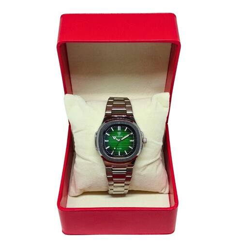 Marca: Tuguir Categoria: Analógico Analógico: Sim (1 Horário) Ponteiros Fluorescentes: Não Digital: Não Luz: Selecione Resistente à Água: 5 ATM - Respingos: Sim - Chuva: Sim - Lavar Carro: Sim - Lavar Louça: Sim - Natação: Sim - Mergulho: Não Característica do Vidro: Cristal Mineral Tipo de Fecho: Dobrável com Botão Cor da Caixa: Prata Material da Caixa: Metal Banho IP Formato da Caixa: Quadrado Comprimento da Caixa: 39,00 (mm) Largura da Caixa: 39,00 (mm) Espessura da Caixa: 10,50 (mm) Cor da Pulseira: Prata Material da Pulseira: Aço Largura da Pulseira: 18,00 (mm) Comprimento Máximo da Pulseira: 280,00 (mm) Alimentação: Bateria Interna Peso Líquido: 0,120 Kg Modelo: 9218 Cor Predominante: Prata Cor Diferencial: Verde Garantia: 12 Meses