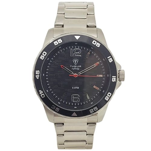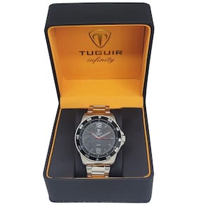 Relógio Masculino Tuguir ógico Infinity TGI37077 Prata e Preto Relógio Masculino Tuguir ógico Infinity TGI37077 Prata e Preto Marca: Tuguir Categoria: ógico ógico: Sim 1 Horário Ponteiros Fluorescentes: Sim Digital: Não Calendário: Não Despertador: Não Mostra o Dia da Semana: Não Mostra o Dia do Mês: Não Cronômetro: Não Contador Regressivo: Não Luz: Não Resistente à Água: 5 ATM Pode ser para nadar no raso, por pouco tempo submerso - Respingos: Sim - Chuva: Sim - Lavar Carro: Sim - Lavar Louça: Sim - Natação: Sim - Mergulho: Não Característica do Vidro: Cristal Mineral Tipo de Fecho: Dobrável com Botão Cor da Caixa: Prata Material da Caixa: Aço Formato da Caixa: Redondo Diâmetro da Caixa: 43,00 mm Espessura da Caixa: 10,00 mm Cor da Pulseira: Prata Material da Pulseira: Aço Largura da Pulseira: 20,00 mm Comprimento Máximo da Pulseira: 230,00 mm Alimentação: Bateria Interna Peso Líquido: 0,120 Kg Modelo: TG9167-H Cor Predominante: Prata Cor Diferencial: Preto : 12 Meses Conteúdo da Embalagem: 01 Relógio 01 Embalagem 01 Termo de Marca: Não Informado