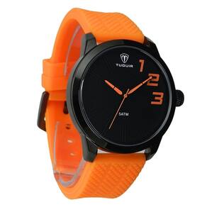 Marca: Tuguir Categoria: Analógico Analógico: Sim (1 Horário) Ponteiros Fluorescentes: Não Digital: Não Luz: Não Resistente à Água: 5 ATM - Respingos: Sim - Chuva: Sim - Lavar Carro: Sim - Lavar Louça: Sim - Natação: Sim - Mergulho: Não Característica do Vidro: Cristal Mineral Tipo de Fecho: Fivela Cor da Caixa: Preto Material da Caixa: Metal Banho IP Formato da Caixa: Redondo Diâmetro da Caixa: 44,00 (mm) Espessura da Caixa: 9,50 (mm) Cor da Pulseira: Laranja Material da Pulseira: Silicone Largura da Pulseira: 20,50 (mm) Comprimento Máximo da Pulseira: 260,00 (mm) Alimentação: Bateria Interna Peso Líquido: 0,070 Kg Modelo: TG224 Cor Predominante: Laranja Cor Diferencial: Preto Garantia: 12 Meses