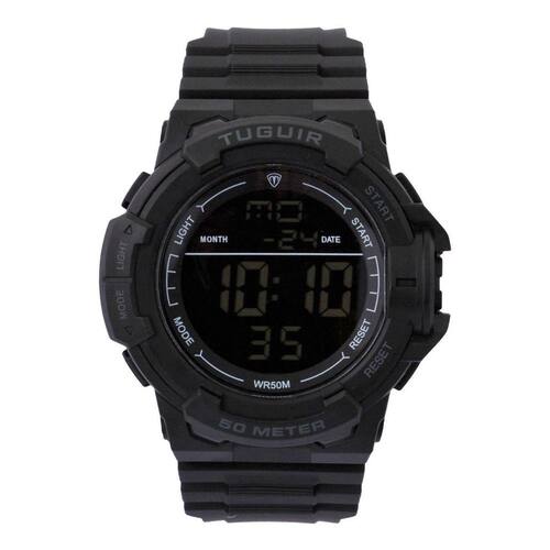 Relógio Masculino Tuguir Digital TG126 - Preto Relógio Masculino Tuguir Digital TG126 - Preto Marca: Tuguir Categoria: Digital ógico: Não Digital: Sim 1 Horário Calendário: Sim Despertador: Sim Mostra o Dia da Semana: Sim Mostra o Dia do Mês: Sim Cronômetro: Sim Contador Regressivo: Não Luz: Sim Cor da Iluminação: Verde Resistente à Água: 5 ATM Pode ser para nadar no raso, por pouco tempo submerso - Respingos: Sim - Chuva: Sim - Lavar Carro: Sim - Lavar Louça: Sim - Natação: Sim - Mergulho: Não Característica do Vidro: Acrílico Tipo de Fecho: Fivela Cor da Caixa: Preta Material da Caixa: Plástico Formato da Caixa: Redondo Diâmetro da Caixa: 53,60 mm Espessura da Caixa: 15,90 mm Cor da Pulseira: Preta Material da Pulseira: Plástico Largura da Pulseira: 53,60 mm Comprimento Máximo da Pulseira: 240,00 mm Alimentação: Bateria Interna Peso Líquido: 0,057 Kg Modelo: TG126 Cor Predominante: Preto : 12 Meses Conteúdo da Embalagem: 01 Relógio 01 Embalagem 01 Termo de Marca: Não Informado