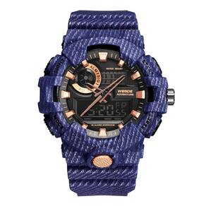 Relógio Masculino Weide AnaDigi WA3J8007 - Azul e Rosé Relógio Masculino Weide AnaDigi WA3J8007 - Azul e Rosé Marca: Weide Categoria: AnaDigi Analógico: Sim 1 Horário Ponteiros Fluorescentes: Não Digital: Sim 1 Horário Calendário: Sim Despertador: Sim Mostra o Dia da Semana: Sim Mostra o Dia do Mês: Sim Cronômetro: Sim Contador Regressivo: Não Luz: Sim Cor da Iluminação: Verde Resistente à Água: 5 ATM Pode ser Utilizado para nadar no raso, por pouco tempo submerso - Respingos: Sim - Chuva: Sim - Lavar Carro: Sim - Lavar Louça: Sim - Natação: Sim - Mergulho: Não Característica do Vidro: Acrílico Tipo de Fecho: Fivela Cor da Caixa: Azul Material da Caixa: Plástico Formato da Caixa: Redondo Diâmetro da Caixa: 52,70 mm Espessura da Caixa: 17,50 mm Cor da Pulseira: Azul Material da Pulseira: Plástico Largura da Pulseira: 21,90 mm Comprimento Máximo da Pulseira: 230,00 mm Alimentação: Bateria Interna Peso Líquido: 0,061 Kg Modelo: WA3J8007 Cor Predominante: Azul Cor Diferencial: Rosé : 12 Meses Conteúdo da Embalagem: 01 Relógio 01 Embalagem 01 Termo de