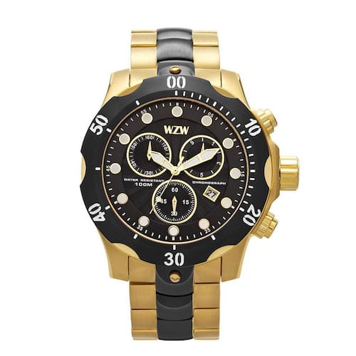 O Relógio Masculino 7241664M da linha clássica da WZW possui detalhes marcantes e qualidade indiscutível. O Relógio possui 55mm de tamanho de caixa, o que faz dele um modelo extra grande que está, inclusive, entre os maiores relógios de pulso que são vendidos no mercado, considerando a coroa seu tamanho passa para 60mm. O Relógio na cor dourada é de extrema qualidade com um aspecto de aço fosco, reforçando as características de um aço de qualidade. O produto chama a atenção não só pelo seu tamanho, mas para o luxo que será expresso em seu pulso. Características: - Relógio em aço com aspecto fosco dourado e detalhes preto - Modelo extra grande - Estilo casual, esportivo e luxo - Fechamento dobrável com botão de trava lock Especificações Técnicas: Marca: WZW Modelo: 7241 Cor da caixa: Dourada Material pulseira: Aço Cor da pulseira: Preta/Dourada Cor de fundo: Dourado Mecanismo: Analógico Diâmetro da caixa: 6 cm Resistente à água: 10 ATM Peso: 240g Funções: Hora, data e cronógrafos Vidro: Cristal Mineral Alimentação: Quartzo - bateria Sobre a WZW A Schwartz & Matos foi criada com a missão de dar continuidade no trabalho em sofisticar o mercado de relógios no Brasil. Em 1982, seu fundador e atual presidente começou expandir seus negócios para este segmento , com o comprometimento de oferecer peças criadas com o mesmo cuidado com que o mercado Europeu ofertava. Atualmente a Schwartz & Matos tem a missão de se tornar uma das maiores empresas no segmento estando nas principais lojas em todas as cidades do país. Ean: 7898533272574