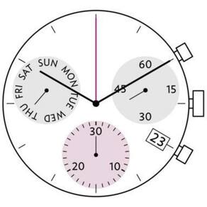 Entre as principais funções da Máquina Para Relógio De Pulso Ronda Z60 Calendário 4, destacam-se o cronógrafo, a paragem central em segundo, o contador de 30 minutos, as funções ADD e SPLIT, os 3 olhos, o indicador de dia, o segundo pequeno e o encontro.