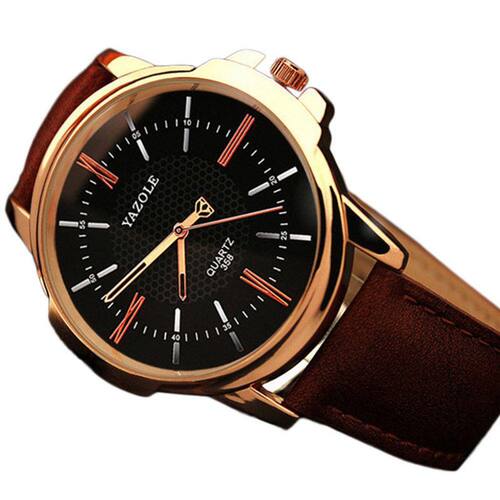 Relógio masculino yazole 358 marrom com fundo preto Excelente relógio, ideal para quem busca um modelo versátil. Combinará com qualquer ocasião. Perfeito para o dia a dia agregando qualidade e conforto.Lindo para presentear quem você gosta Tipo de item: relógio de pulso100% novo e de alta qualidadeDesign de luxoMarca: yazoleModelo: 358Estilo: social / casualDescrição do mostrador:Material: metal de alta qualidadeExposição: analógicoFormato: redondoEspessura: 8 mmDiâmetro: 46 mmPeso: 46 g Descrição da pulseira:Fechamento: fivela em aço inoxidávelMaterial: couroComprimento: 24 cmLargura: 20 mm Relógio não é à prova d água.Embalado em saco plástico do fabricanteNão acompanha caixa.