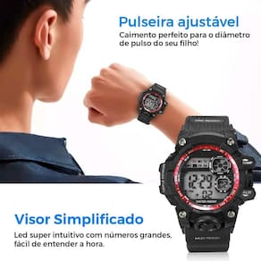 - 1 Relógio Digital Infantil Orizom Kids, à prova d'água, com luz de LED, cronômetro e alarme. Perfeito para o dia a dia e atividades ao ar livre, este relógio possui uma pulseira de silicone ajustável para conforto garantido.