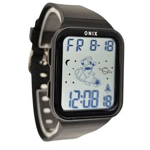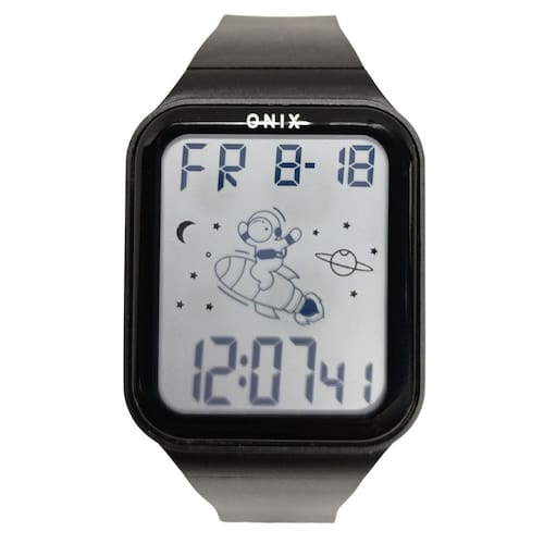 Relógio Menino Onix Digital IT-13101 PretoMarca: Onix Categoria: Digital Analógico: Não Digital: Sim (1 Horário) Calendário: Sim Despertador: Sim Mostra o Dia da Semana: Sim Mostra o Dia do Mês: Sim Cronômetro: Sim Luz: Sim Cor da Iluminação: VerdeResistente à Água: 5 ATM (Pode ser utilizado para nadar no raso, por pouco tempo submerso) - Respingos: Sim - Chuva: Sim - Lavar Carro: Sim - Lavar Louça: Sim - Natação: Sim - Mergulho: Não Característica do Vidro: Acrílico Tipo de Fecho: Fivela Cor da Caixa: Preto Material da Caixa: Plástico Formato da Caixa: Quadrado Comprimento da Caixa: 42,00 (mm) Largura da Caixa: 34,00 (mm) Espessura da Caixa: 13,00 (mm) Cor da Pulseira: Preto Material da Pulseira: Silicone Largura da Pulseira: 17,50 (mm) Comprimento Máximo da Pulseira: 240,00 (mm) Alimentação: Bateria Interna Peso Líquido: 0,040 Kg Modelo: IT-13101 Cor Predominante: Preto Garantia: 12 MesesConteúdo da Embalagem: 01 Relógio 01 Embalagem 01 Termo de Garantia