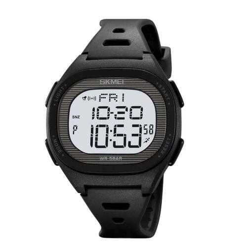 Marca: Skmei Categoria: Digital Analógico: Não Digital: Sim (2 Horário) Calendário: Sim Despertador: Sim Mostra o Dia da Semana: Sim Mostra o Dia do Mês: Sim Cronômetro: Sim Contador Regressivo: Sim Luz: Sim Cor da Iluminação: Verde Resistente à Água: 5 ATM - Respingos: Sim - Chuva: Sim - Lavar Carro: Sim - Lavar Louça: Sim - Natação: Sim - Mergulho: Não Característica do Vidro: Acrílico Tipo de Fecho: Fivela Cor da Caixa: Preto Material da Caixa: Plástico Formato da Caixa: Quadrado Comprimento da Caixa: 41,00 (mm) Largura da Caixa: 43,50 (mm) Espessura da Caixa: 11,00 (mm) Cor da Pulseira: Preto Material da Pulseira: Borracha Largura da Pulseira: 18,00 (mm) Comprimento Máximo da Pulseira: 230,00 (mm) Alimentação: Bateria Interna Peso Líquido: 0,038 Kg Modelo: 2189 Cor Predominante: Preto Garantia: 12 Meses