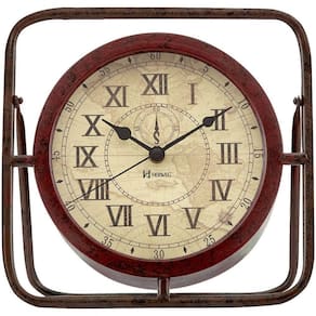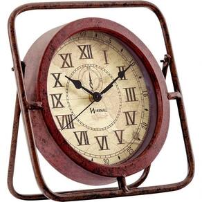 A base é feita de metal pintado e envelhecido, dando um toque de charme e elegância. O visor de vidro protege o mecanismo e garante a durabilidade do produto.