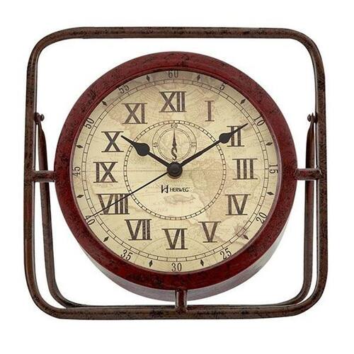 Relógio de Mesa Clássico Retrô Mapa Herweg 6487-115 Metal/Ferro Vintage Estilo: Decorativo Mostrador com Mapa mundial envelhecido Números Romanos Base em metal pintado/envelhecido Visor de Vidro Medidas: Largura: 25,5 cm Altura: 25,5 cm Espessura: 5 cm Mecanismo Step tic-tac Usa pilha AA não inclusas Manual de Instruções Certificado de de 12 meses Marca: Não Informado