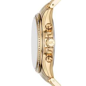 Feminino Ref: Mk7250/4dn Cronógrafo Dourado DESCRIÇÃO DO PRODUTO: Caixa de Metal Dourada Pulseira de Aço Dourada Vidro de Cristal Mineral Fundo Pressão Resistente à Água 3 Atm Diâmetro / Largura da Caixa: 42.00 Mm Altura da Caixa: 12.00 mm Função: Analógico, Cronógrafo, Calendário Linha: Michael Kors Jetset Mostrador dourado com números e pedras Aro externo de pedras Alimentação do Maquinário: Bateria Marca: Não Informado