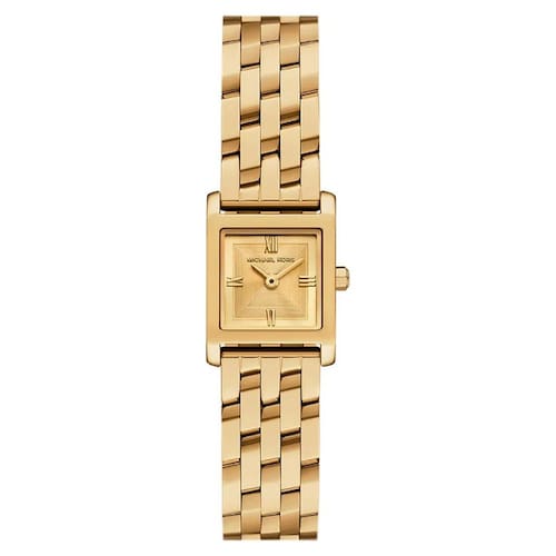 Georgie MK4931/1DN Dourado Este elegante design quadrado ganha um ar moderno com a exclusiva pulseira multilink em ângulo, que une inspiração clássica a um estilo sofisticado e contemporâneo. O modelo é complementado por um mostrador texturizado em tom sobre tom, entregando um visual refinado e atemporal. Especificações Técnicas Mecanismo: Analógico Quartzo Gênero: Feminino Visor: Dourado Vidro: Cristal mineral Pulseira: Dourado Material da Caixa: Aço inoxidável Prova d'água: 50m Diâmetro da caixa: 19mm Espessura da caixa: 7mm Largura da pulseira: 15mm Tipo de fecho: Fivela simples : 1 ano pela fabricante Michael Kors Marca: Não Informado