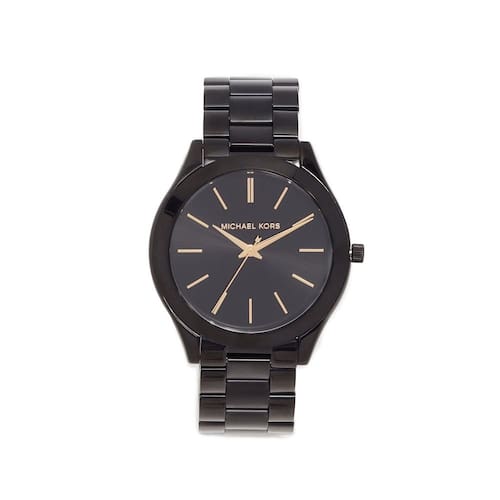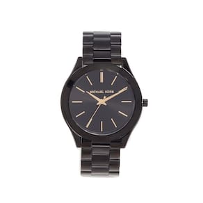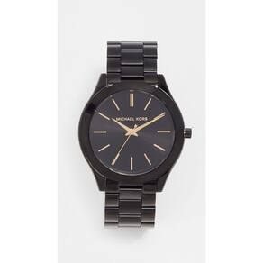 Michael Kors Relógio feminino Slim Runway, pulseira de aço inoxidável para mulheres, Preto/dourado, MK3221 - Pista fina - Perfeito para todos os dias, o relógio de três ponteiros Michael Kors Slim Runway em aço inoxidável preto tem um estilo clássico. - Caixa e mostrador: caixa redonda de aço inoxidável de 42 mm com mostrador preto; a face de cristal mineral resiste a arranhões - Pulseira de relógio: pulseira preta de aço inoxidável; 20 mm de largura; os elos podem ser removidos para um ajuste personalizado - Movimento: Movimento de quartzo com visor analógico de três pontos; importado - Resistente à água: até 50 m (165 pés): Vestível ao nadar em águas rasas; 5 ATM