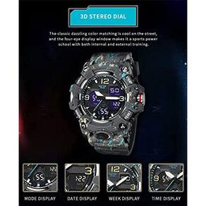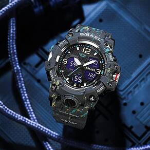 Relógio militar masculino SMAEL Relógio digital LED ao ar livre à prova d'água, , relógio esportivo de pulso militar para homens Camo Gray_8008