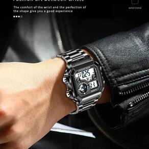 Descubra o equilíbrio perfeito entre elegância e funcionalidade com este relógio masculino de aço inoxidável. Este acessório luminescente apela para os amantes de moda e tecnologia ao integrar uma estética sofisticada com funções digitais. Ideal para homens que buscam unir estilo casual e esporte, esse relógio oferece um design quadrado único que o diferencia na multidão. Seu mostrador analógico-digital é altamente legível, e os materiais premium garantem durabilidade.