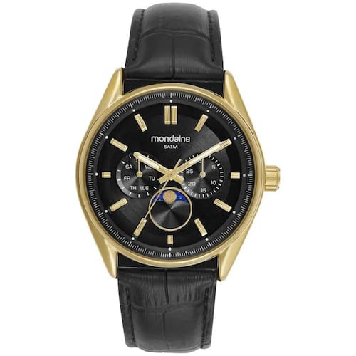 Relógio Mondaine 32948GPMVDO1 Fases da Lua Relógio Mondaine 32948GPMVDO1 Fases da Lua, uma peça que une precisão suíça e sofisticação. Seu mostrador clássico e minimalista, aliado à fases da lua, transformam este relógio em um item funcional e esteticamente refinado. Especificações Técnicas Mecanismo: ógico Máquina Miyota Gênero: Masculino Visor: Preto Vidro: Cristal Mineral Funções: Dia da semana, Data e Fases da Lua Material da Pulseira: Couro Prova d'água: 50m Diâmetro da caixa: 42 mm : 12 meses pela fabricante Mondaine Marca: Não Informado