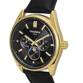 Relógio Mondaine 32948GPMVDO1 Fases da Lua Relógio Mondaine 32948GPMVDO1 Fases da Lua, uma peça que une precisão suíça e sofisticação. Seu mostrador clássico e minimalista, aliado à fases da lua, transformam este relógio em um item funcional e esteticamente refinado. Especificações Técnicas Mecanismo: ógico Máquina Miyota Gênero: Masculino Visor: Preto Vidro: Cristal Mineral Funções: Dia da semana, Data e Fases da Lua Material da Pulseira: Couro Prova d'água: 50m Diâmetro da caixa: 42 mm : 12 meses pela fabricante Mondaine Marca: Não Informado