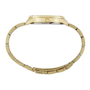 Características Formato do Relógio: Redondo Composição do Vidro: Cristal mineral Material da Caixa: Aço Inox Cor da Caixa: Dourado Cor do mostrador: Amarelo, Espelhado Material da Pulseira: Aço Inox Cor da Pulseira: Dourado Mecanismo: Analógico Quartz