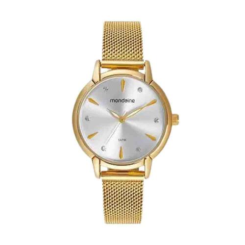 Relógio Mondaine Dourado Feminino 32703LPMVDE3Na Elister, a qualidade é uma prioridade em todos os nossos produtos e serviços. Nós nos esforçamos para oferecer aos nossos clientes uma ampla variedade de acessórios, incluindo relógios e óculos de sol, com as melhores marcas e estilos. Além disso, a nossa equipe é treinada para oferecer um atendimento excepcional, garantindo que cada cliente seja tratado com o respeito e a atenção que merece.ESPECIFICAÇÕES TÉCNICAS- Marca: Mondaine- Gênero: Feminino- Tipo de mostrador: Analógico- Tipo de movimento: Quartzo- Tipo de fecho: Gancho- Cor da caixa: Dourada- Cor do mostrador: Prata com detalhes dourados e pedrarias- Cor da pulseira: Dourada- Material da caixa: Aço- Material da pulseira: Aço- Largura da caixa: 3,2- Comprimento do relógio: 22 cm- Resistência à água: 5 ATM 50 metros - Garantia: 12 meses