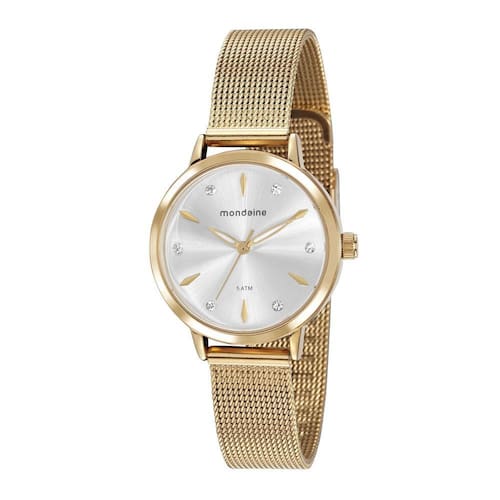 Relógio Mondaine Feminino 76733LPMVDE3 Gênero Feminino Garantia 12 Meses Linha Steel Material da Pulseira Aço Mecanismo Analógico Resistência à Água ATM 5 (Resistente à Água - 50M) Tipo de Energia Bateria Acompanha Certificado de Garantia, Embalagem Original , Manual de Instrução, Nota Fiscal Comprimento do Relógio 22,5cm (Aprox) Espessura da Caixa 0,7cm (Aprox) Largura da Caixa 3,0cm (Aprox) Material da Caixa Aço Mostrador Dourado Com Detalhes em Cristais Vidro Cristal Mineral Medidas Relógio Sim Marca. Mondaine