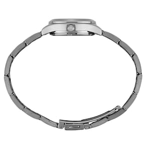 Caixa de Metal Pulseira de Aço Vidro de Cristal Mineral Fundo Rosqueado Resistente à Água 5 Atm Diâmetro / Largura da Caixa: 25.00 MM Função: Analógico Alimentação do Maquinário: Bateria Mostrador Prateado com números Garantia de 1 Ano