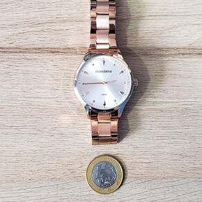 Marca: Mondaine Modelo: 32108LPMVRE1 Tipo de relógio: Analógico Gênero: Feminino Cor da caixa: Rosé Cor da pulseira: Rosé Estilo: Casual Alarme: Não Cronômetro: Não Calendário: Não Luz: Não Resistência à água: Sim – 5 ATM = 50 metros Tipo de fecho: Dobrável, com trava lateral Material da Caixa: Aço Inoxidável Material da Pulseira: Aço Inoxidável Características do vidro: Cristal Mineral Tamanho da caixa: 42 mm Espessura da caixa: 10 mm Peso: 93 g Comprimento da pulseira: 24 cm Largura da pulseira: 18 mm Tampa do fundo: Rosqueado Alimentação: Bateria Garantia do Fabricante: 12 meses Fabricante: Seculus da Amazônia Indústria e Com S/A